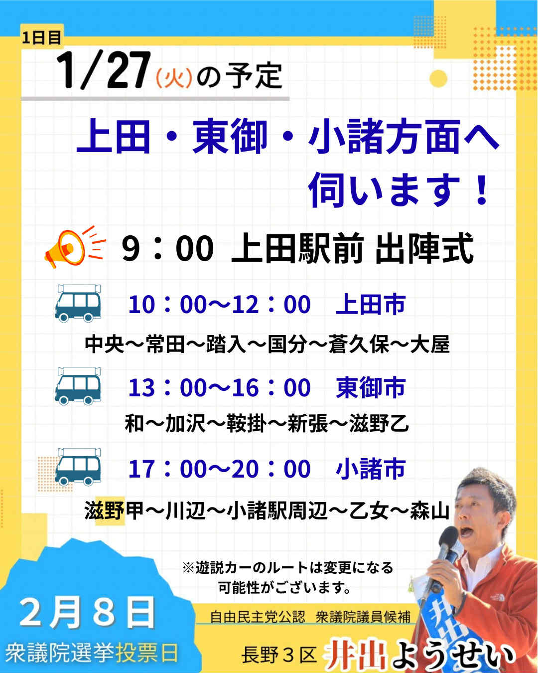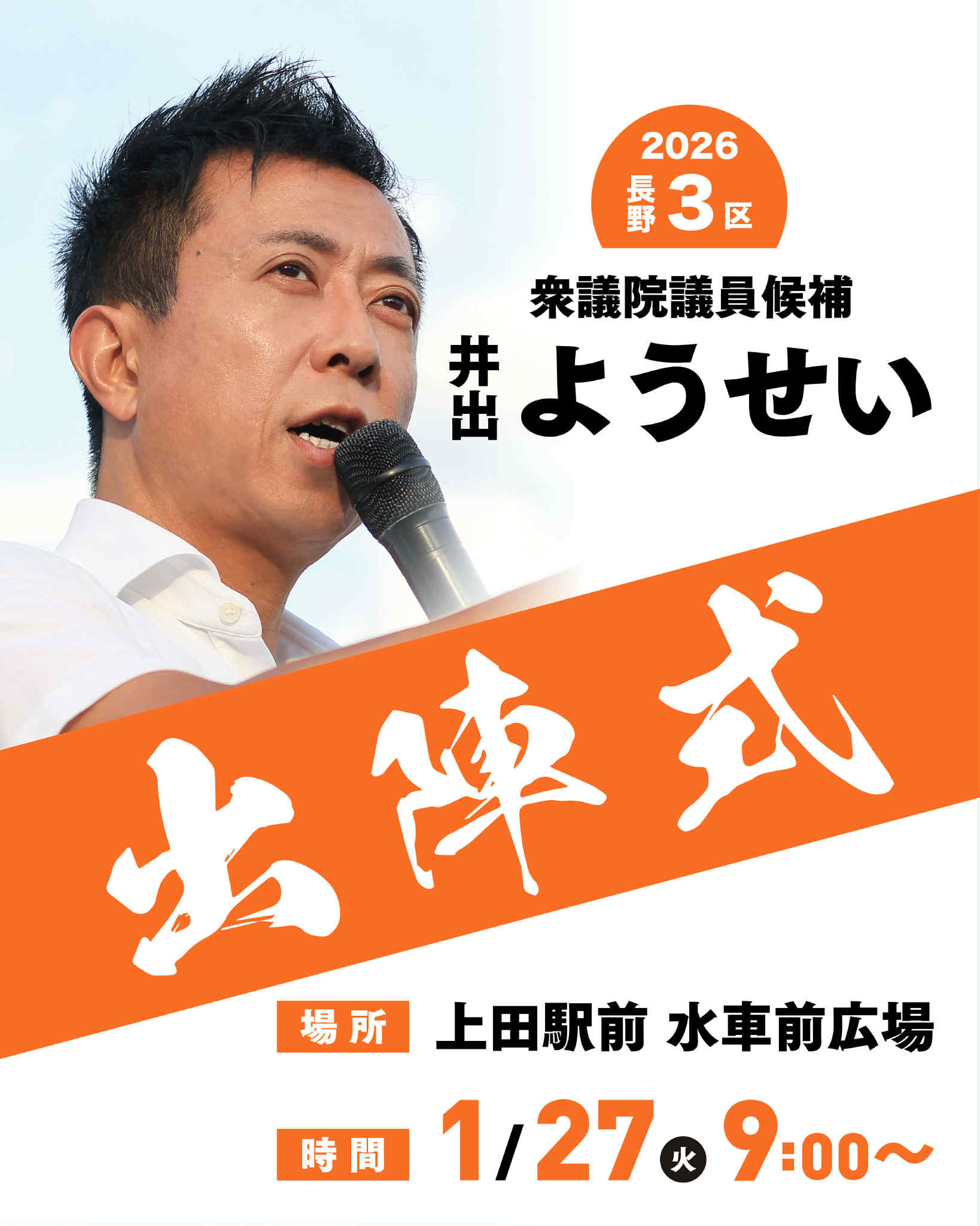 街頭演説 【2026年1月27日】遊説・街頭演説 #ようせいに託す 2026.01.27 Tweet Share この記事のタイトルとURLをコピーする 2026年1月27日(火) 12日間、笑顔で頑張ります! Tweet Share